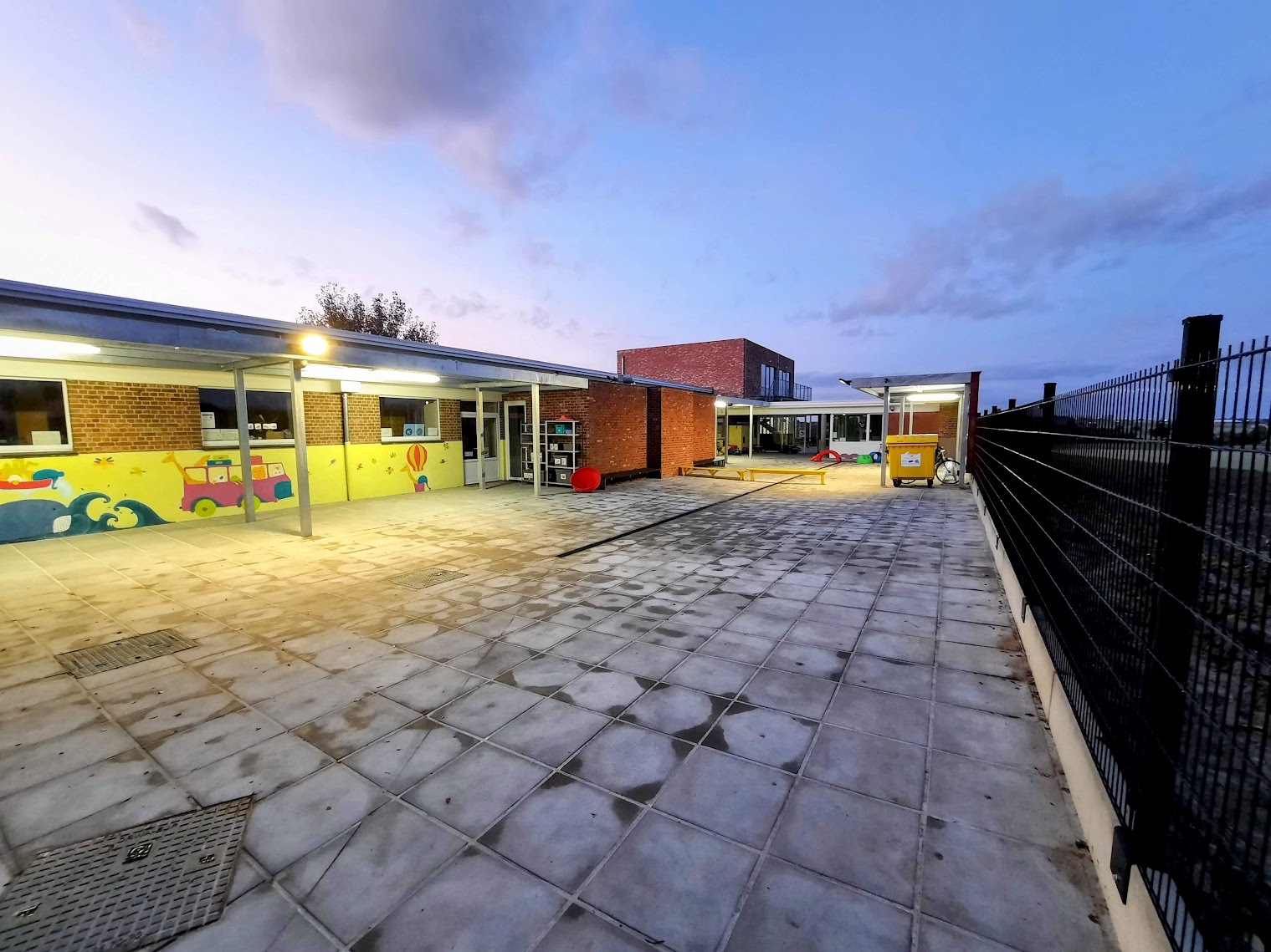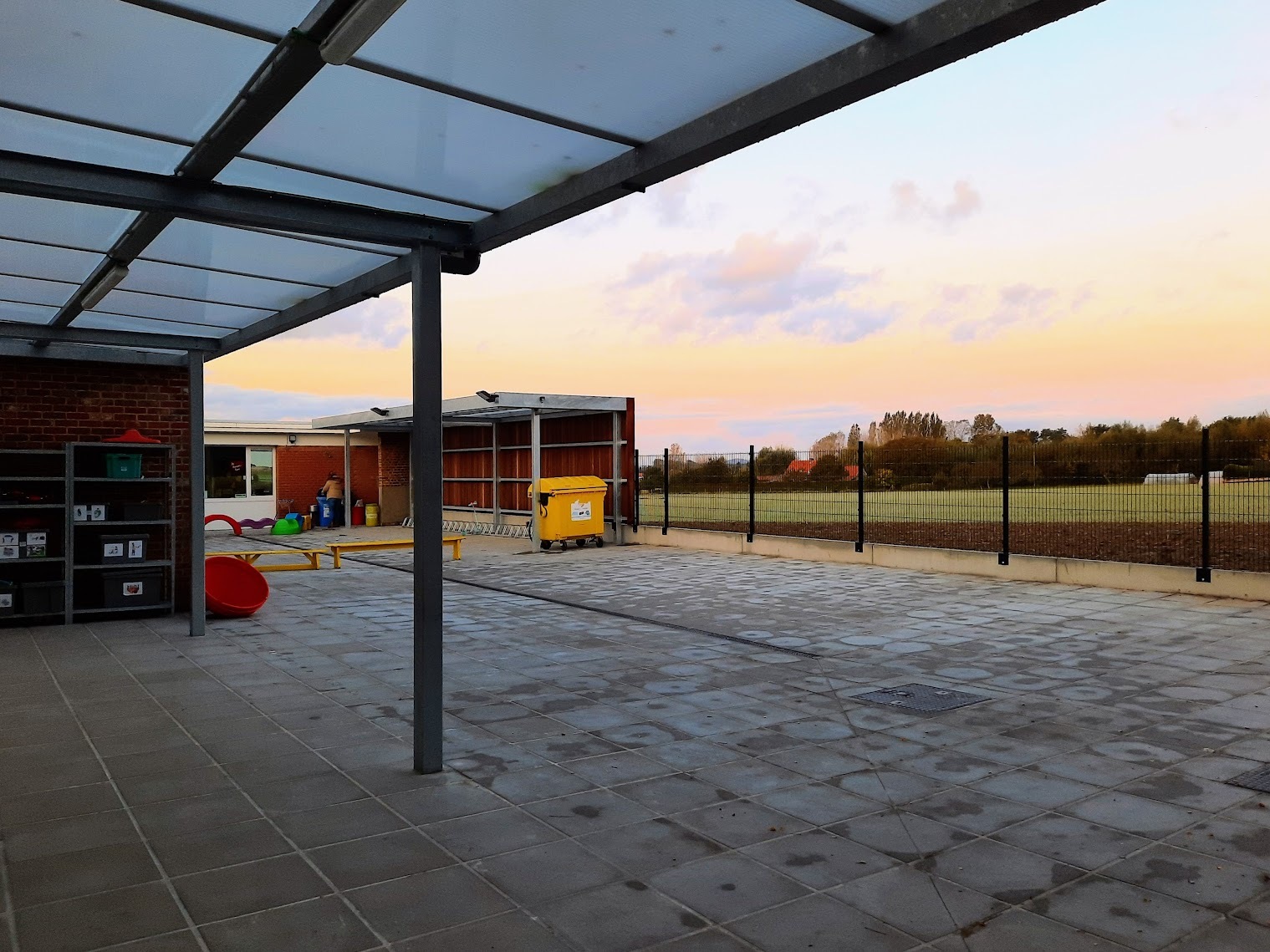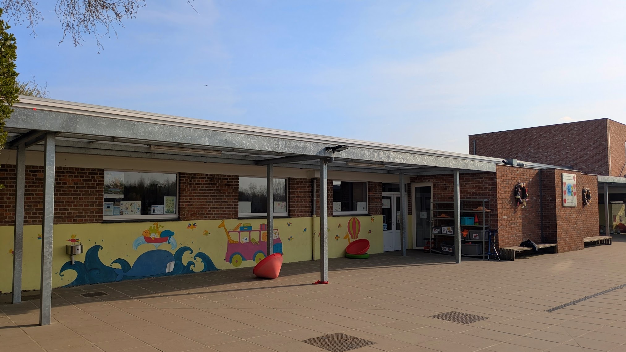 De speelplaats van vrije basisschool 'De Kleine Prins' in Abele was toe aan een grondige vernieuwing. In opdracht van de stad Poperinge nam ABS deze transformatie voor haar rekening. Na de afbraak van de verouderde overkappingen en de volledige uitgraving van de oude koer, maakten we de weg vrij voor een moderne heraanleg. De buitenruimte werd volledig genivelleerd en opnieuw ingericht met gloednieuwe overkappingen en een functionele fietsenstalling. Dankzij de nieuwe omheining geniet de school nu van een open uitzicht op de omliggende natuur, wat samen met de houten afwerking zorgt voor een harmonieus en esthetisch geheel.