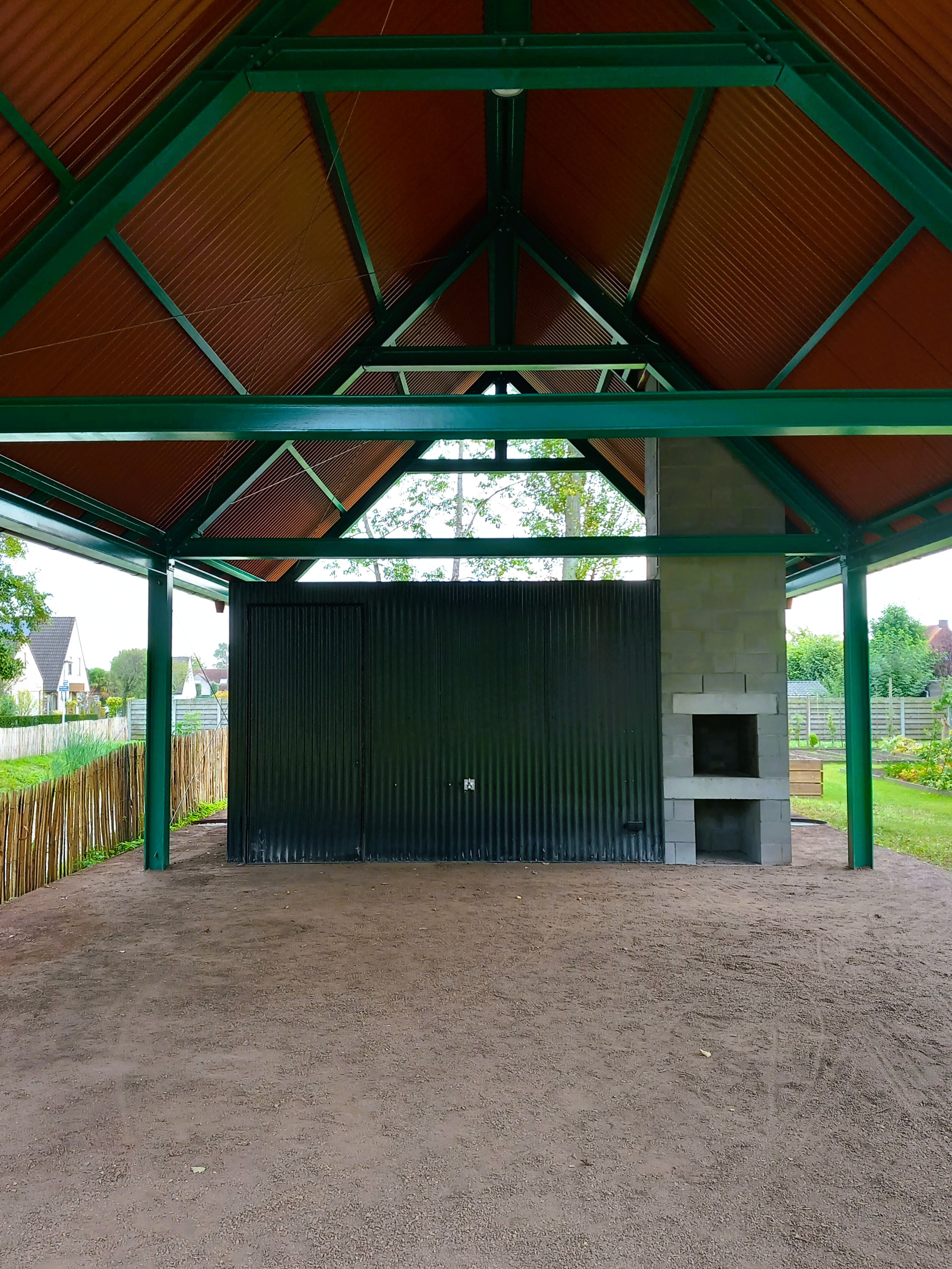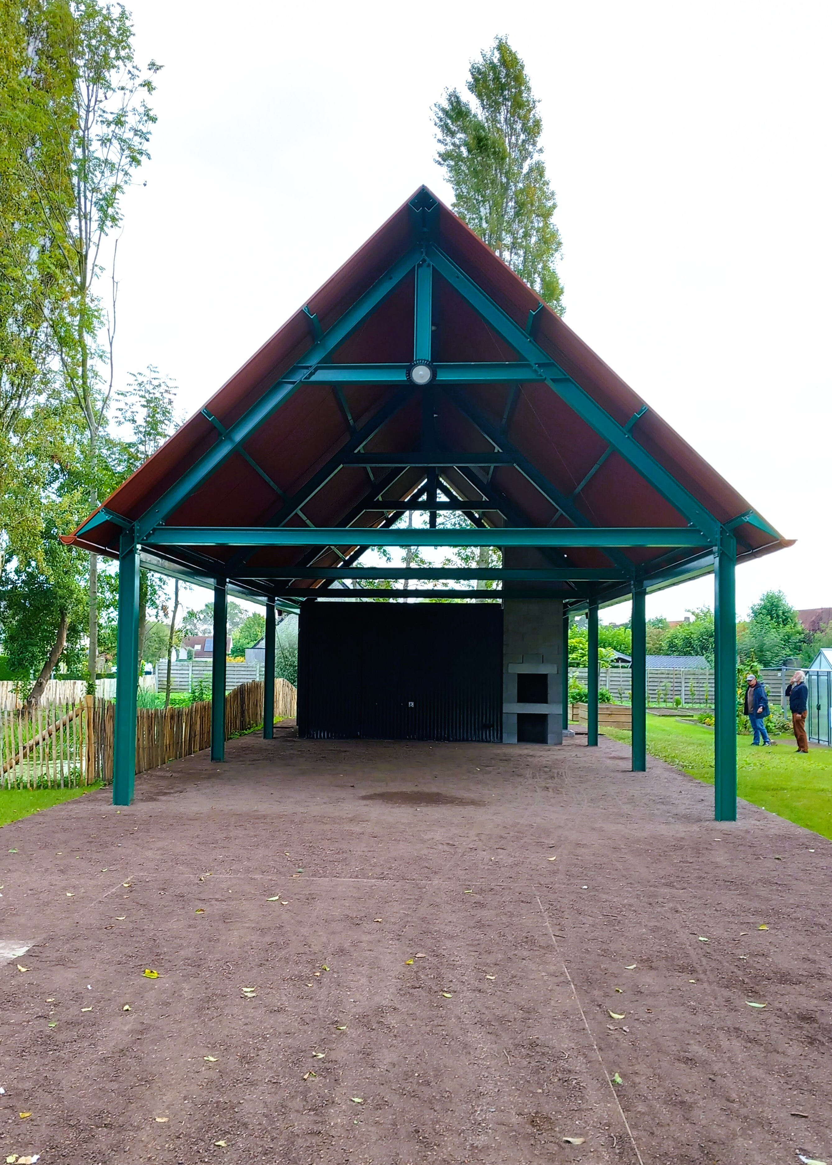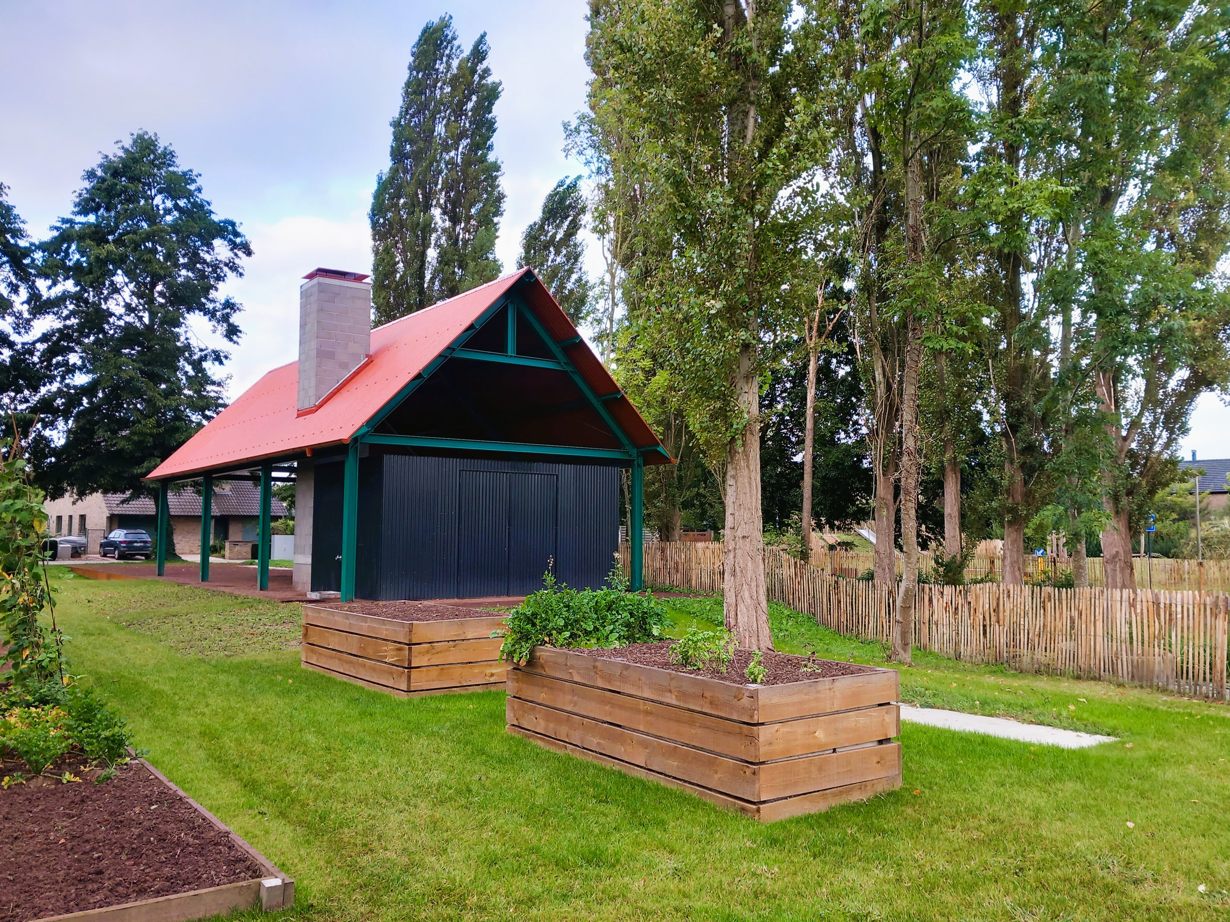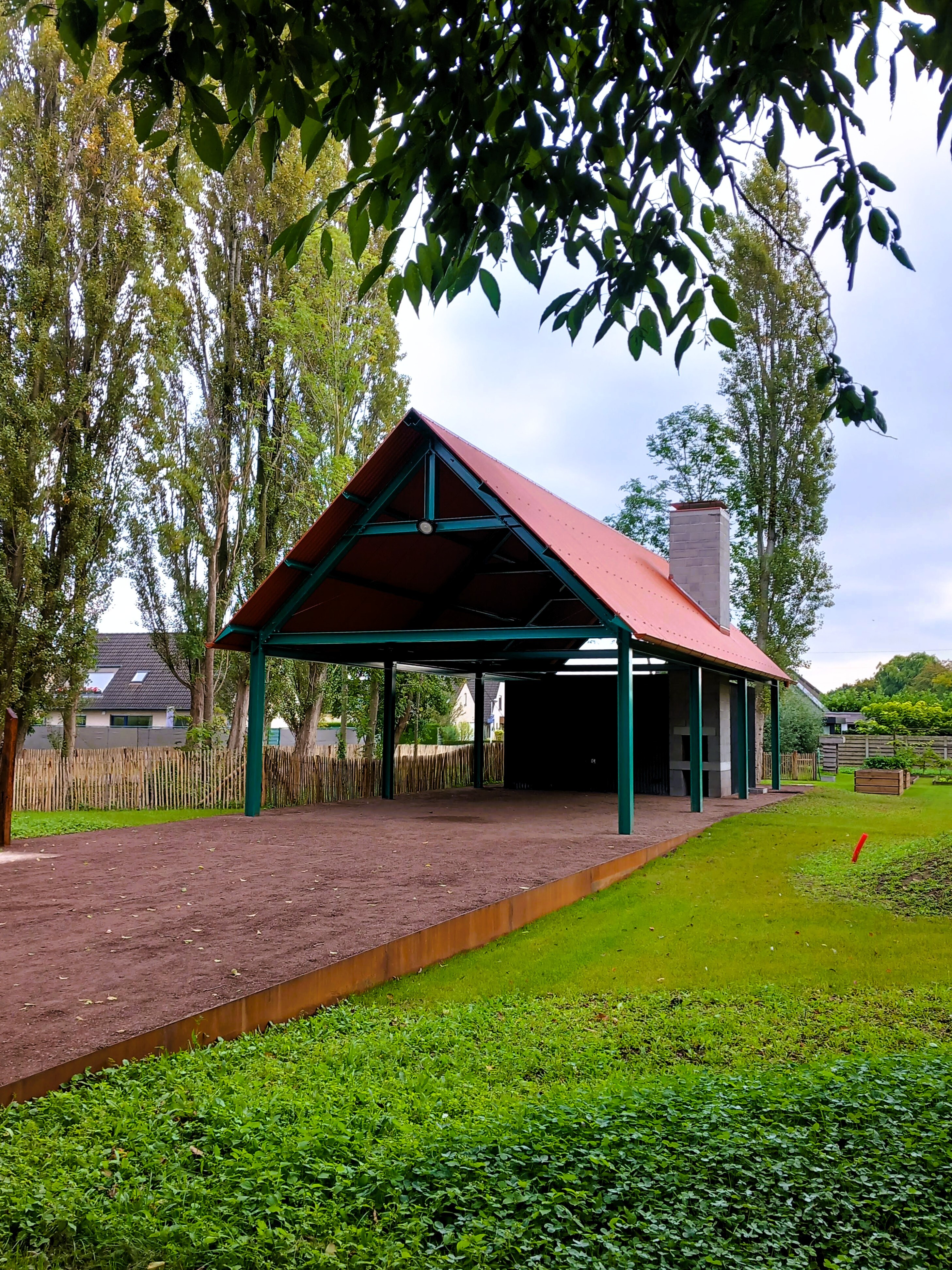 Dit door ABS opgeleverde paviljoen is meer dan alleen een overkapping. Met de barbecue als centraal punt is het de ideale plek voor buurtactiviteiten en ontspanning. De achterzijde is slim benut als afgesloten berging, waardoor het paviljoen zowel een esthetische als praktische meerwaarde biedt aan de publieke ruimte in Roeselare.